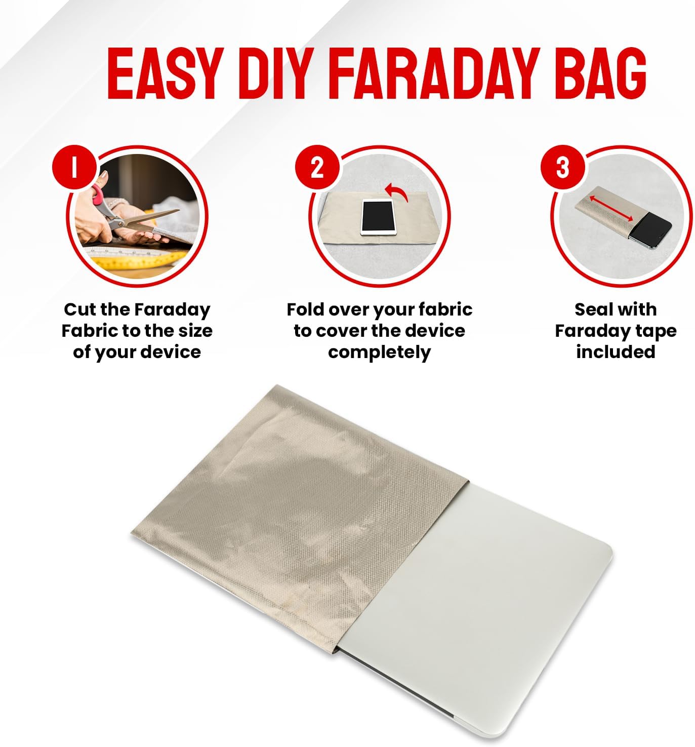 Cut, fold, seal. That’s it. Create custom pouches, laptop sleeves, or full device cages with household scissors and the included tape. Non-conductive thread lets you sew edges for a pro finish.